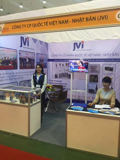 Là một doanh nghiệp hoạt động trong lĩnh vực dịch vụ y tế, Công ty Cổ phần Quốc tế Việt Nam Nhật Bản (JVI) đã giới thiệu tại Triển lãm các gói dịch vụ y tế cao cấp từ Nhật Bản như: trị liệu tế bào gốc cho trẻ hóa và điều trị bệnh, phương pháp miễn dịch trong điều trị ung thư, khám bệnh tổng quát và chuyên sâu, chẩn đoán ung thư sớm bằng công nghệ gien và tế bào …
